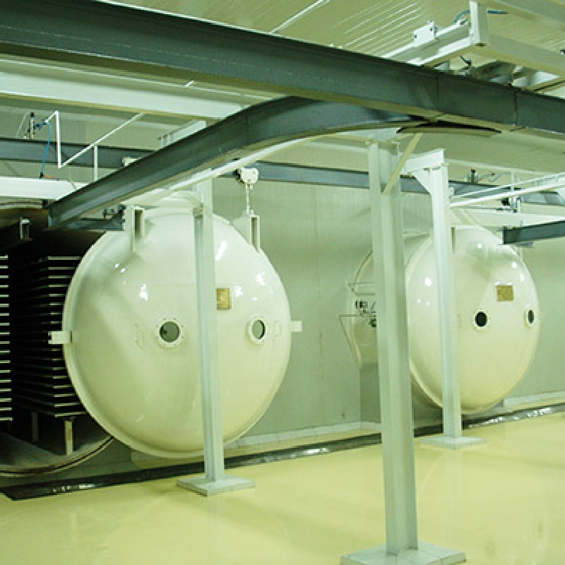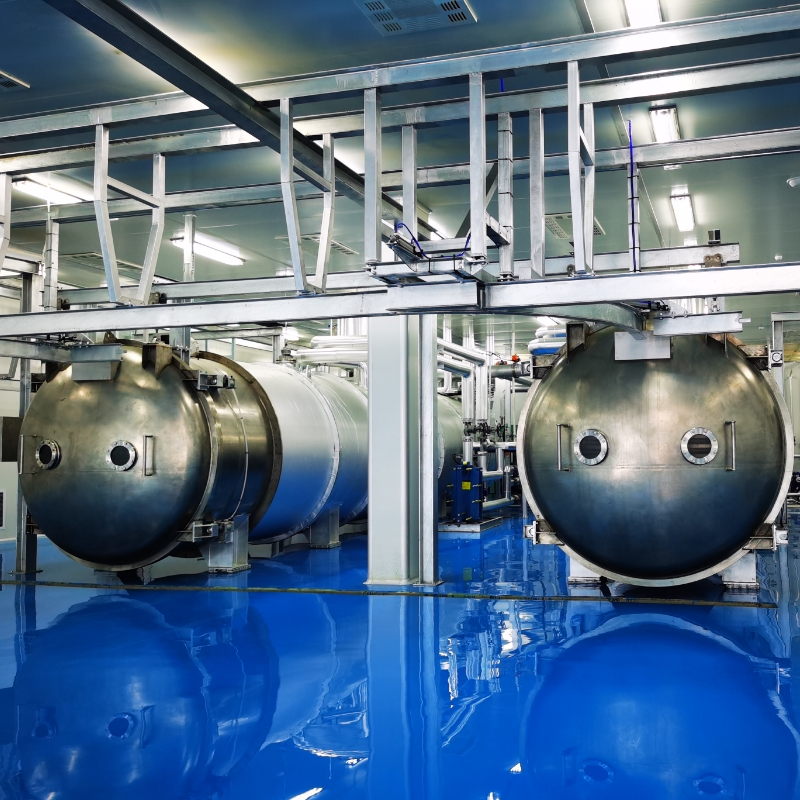 يتم معالجة الأطعمة المختلفة التي تحتوي على الرطوبة وفقا لخصائصها ثم تخضع لظروف فراغ عالية ودرجة حرارة منخفضة. في ظل هذه الظروف، ترتفع الرطوبة في الأطعمة المجمدة مباشرة من الجليد إلى بخار الماء دون الذوبان، وبالتالي تجفيف وتجفيف الأغذية. يحتفظ الغذاء بلونه الأصلي ورائحته ونكهه ومحتوياته الغذائية ومظهره ، ويعرض خصائص إعادة التجفيف الممتازة ، مما يجعله منتجًا غذائيًا طبيعيًا ونظيفيًا مثاليًا.