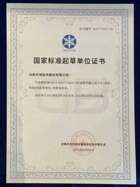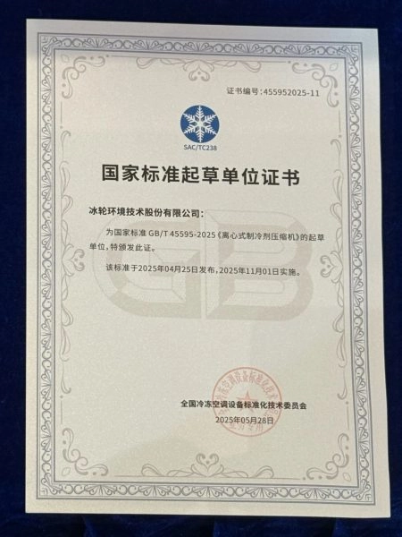 MOON-TECH has also contributed to the drafting of two national standards: GB/T 45595-2025 “Centrifugal Refrigerant Compressors” and GB/T 45477-2025 “Oil-Free Suspended Centrifugal Chiller (Heat Pump) Units.”